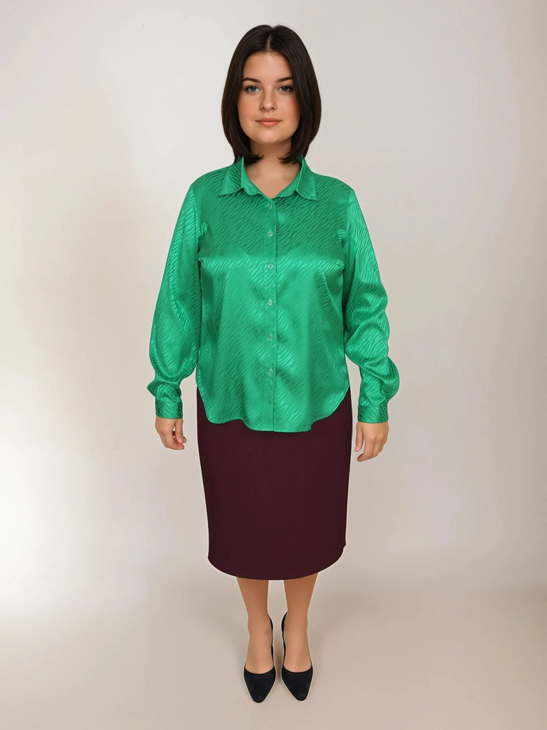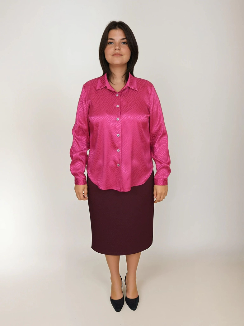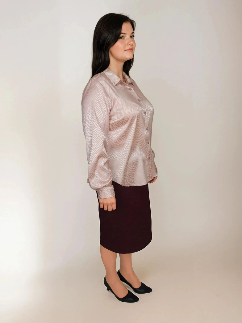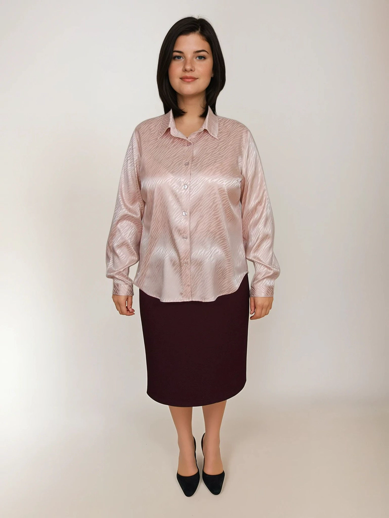 Cămaşă din satin cu dungi diagonale subţiri, care oferă o eleganţă deosebită. Mânecile lungi cu manşete se asortează ideal cu fuste de birou, pantaloni clasici sau blugi. Satinul se aşează frumos pe corp, oferind confort.