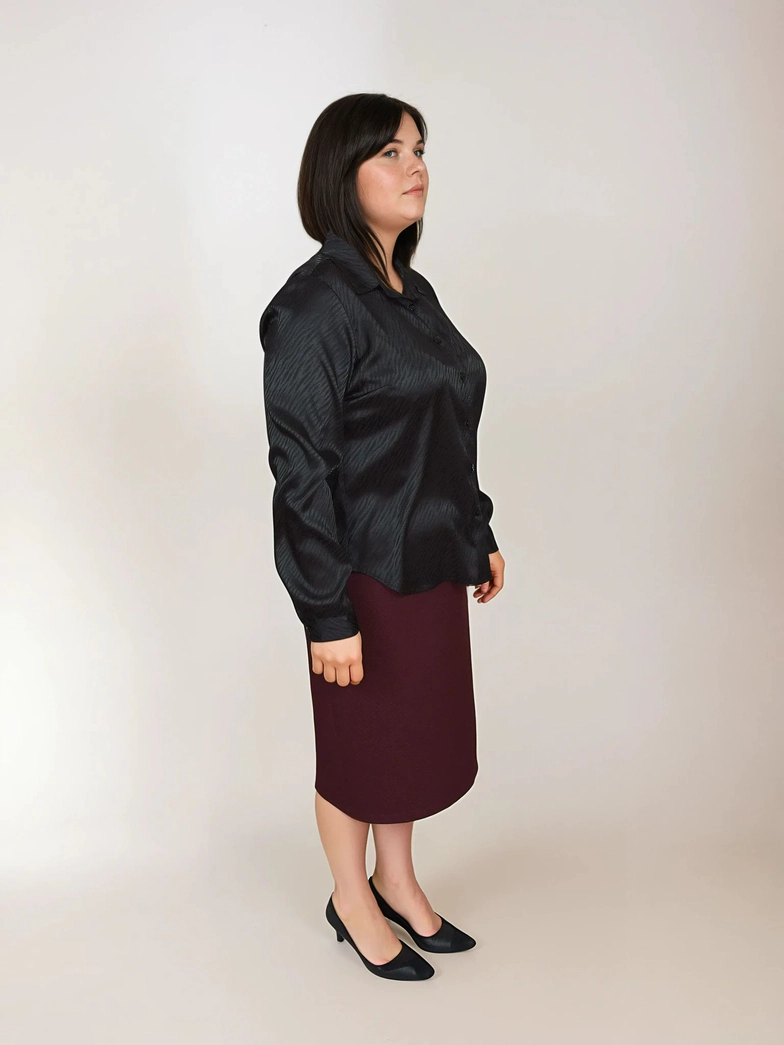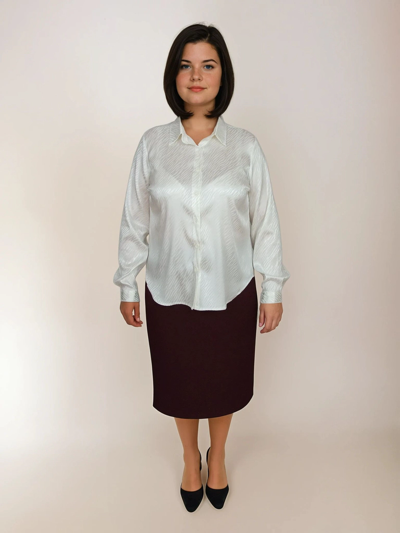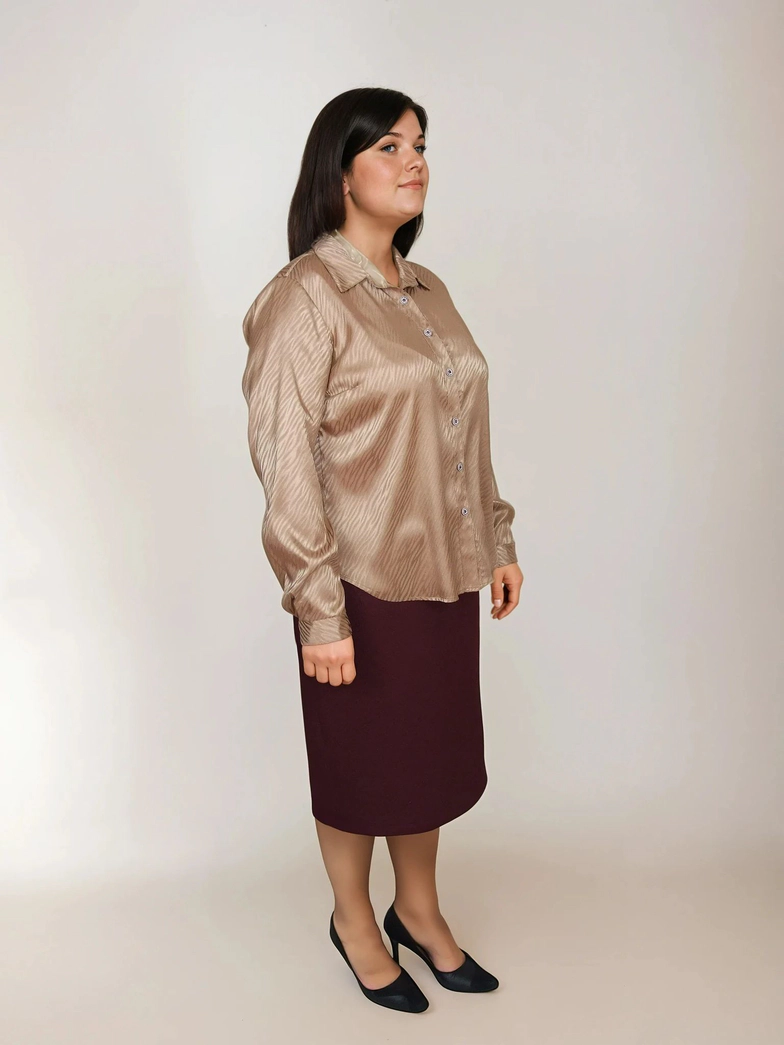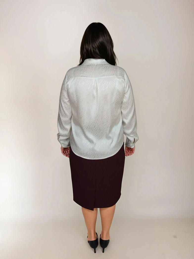 Cămaşă din satin cu dungi diagonale subţiri, care oferă o eleganţă deosebită. Mânecile lungi cu manşete se asortează ideal cu fuste de birou, pantaloni clasici sau blugi. Satinul se aşează frumos pe corp, oferind confort.