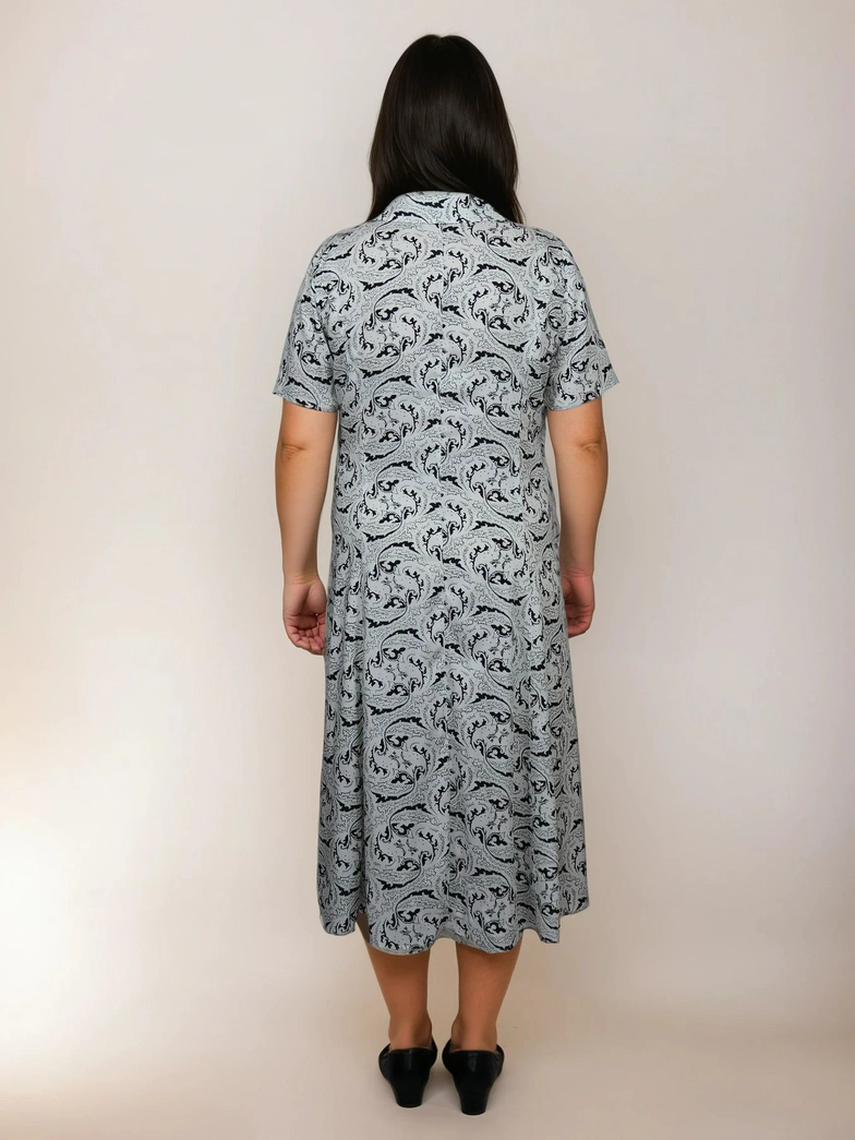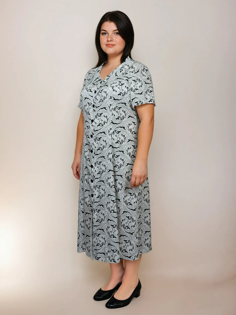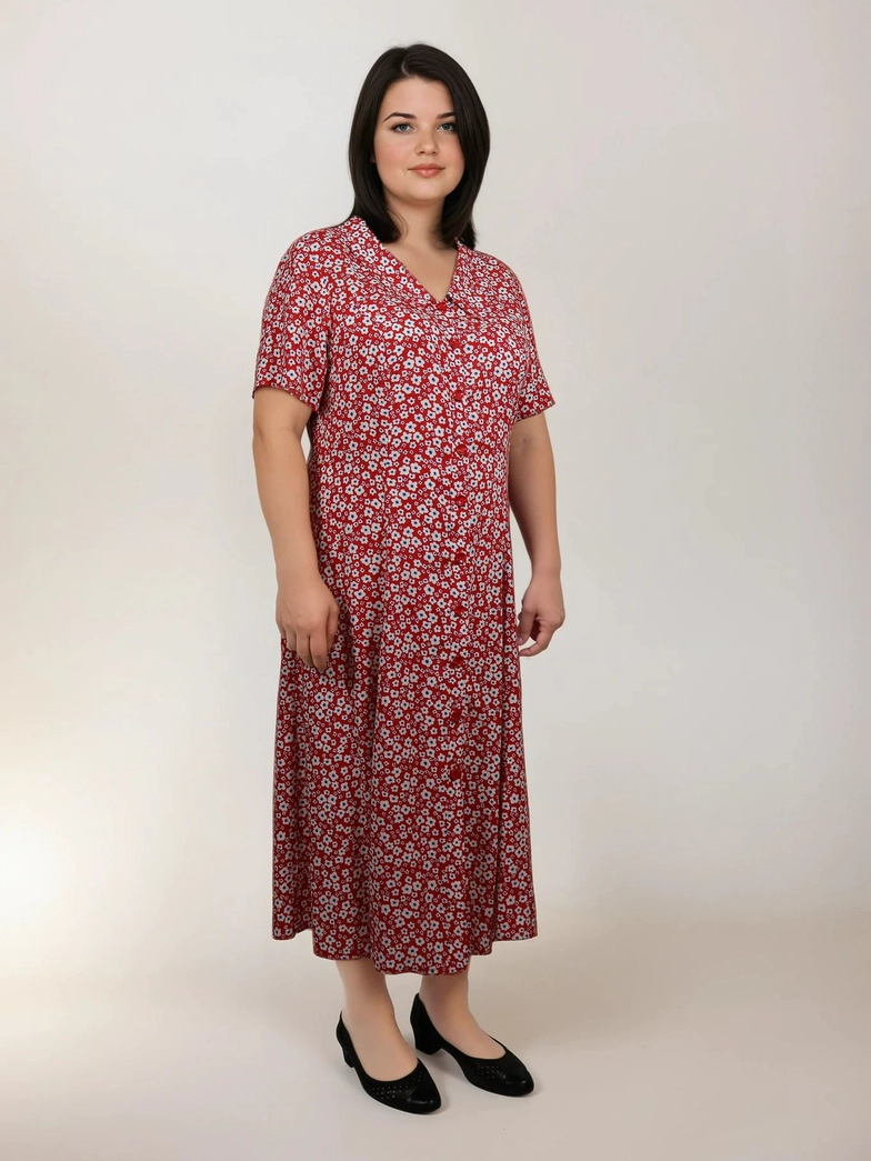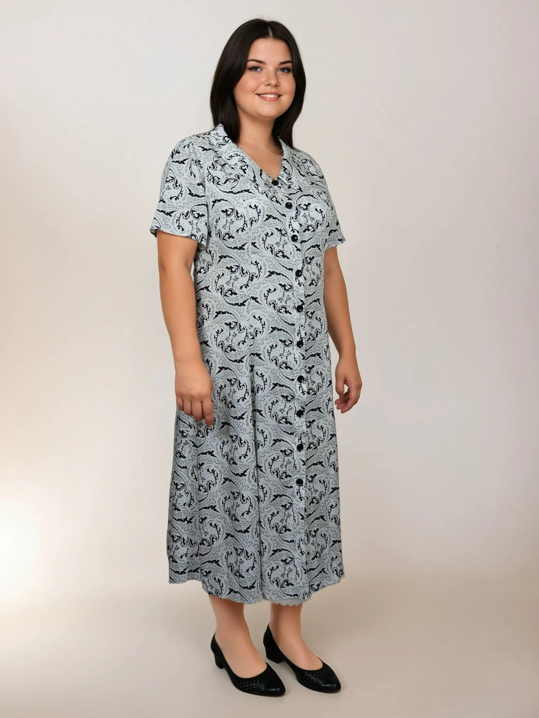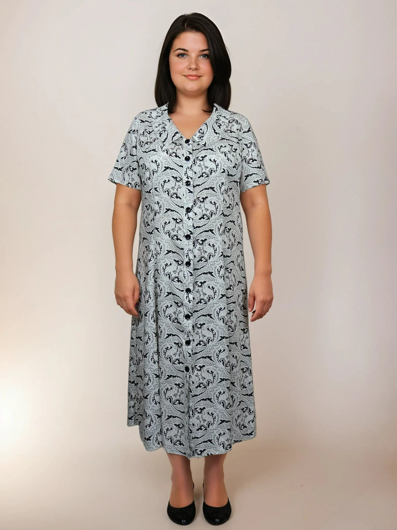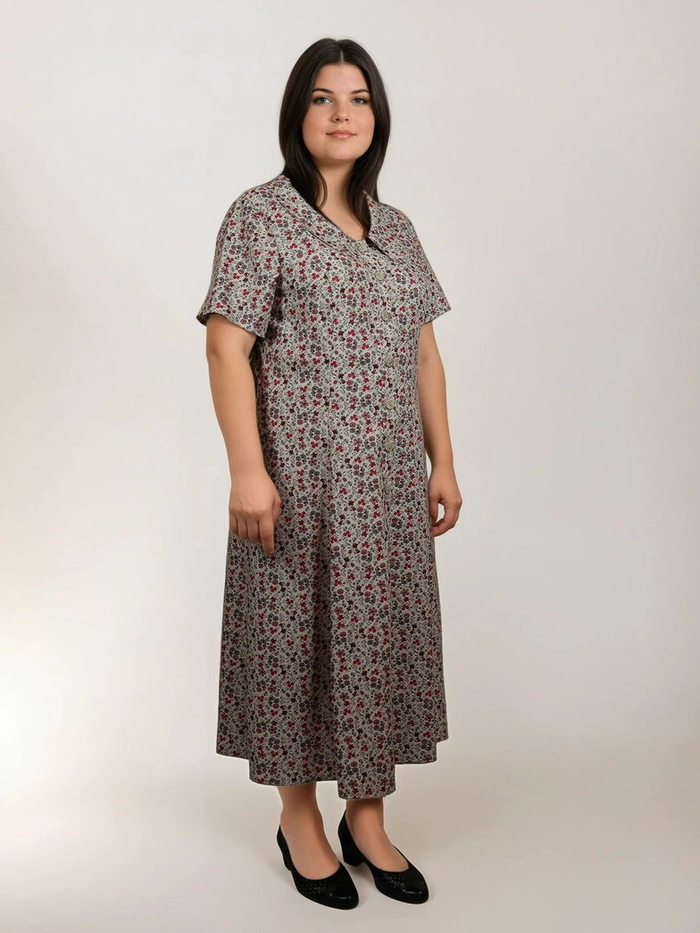 Rochie vâscoză, încheiată cu nasturi și mânecă scurtă. Toate modelele prezintă imprimeuri florale în nuanțe variate. Ideală pentru sezonul cald.